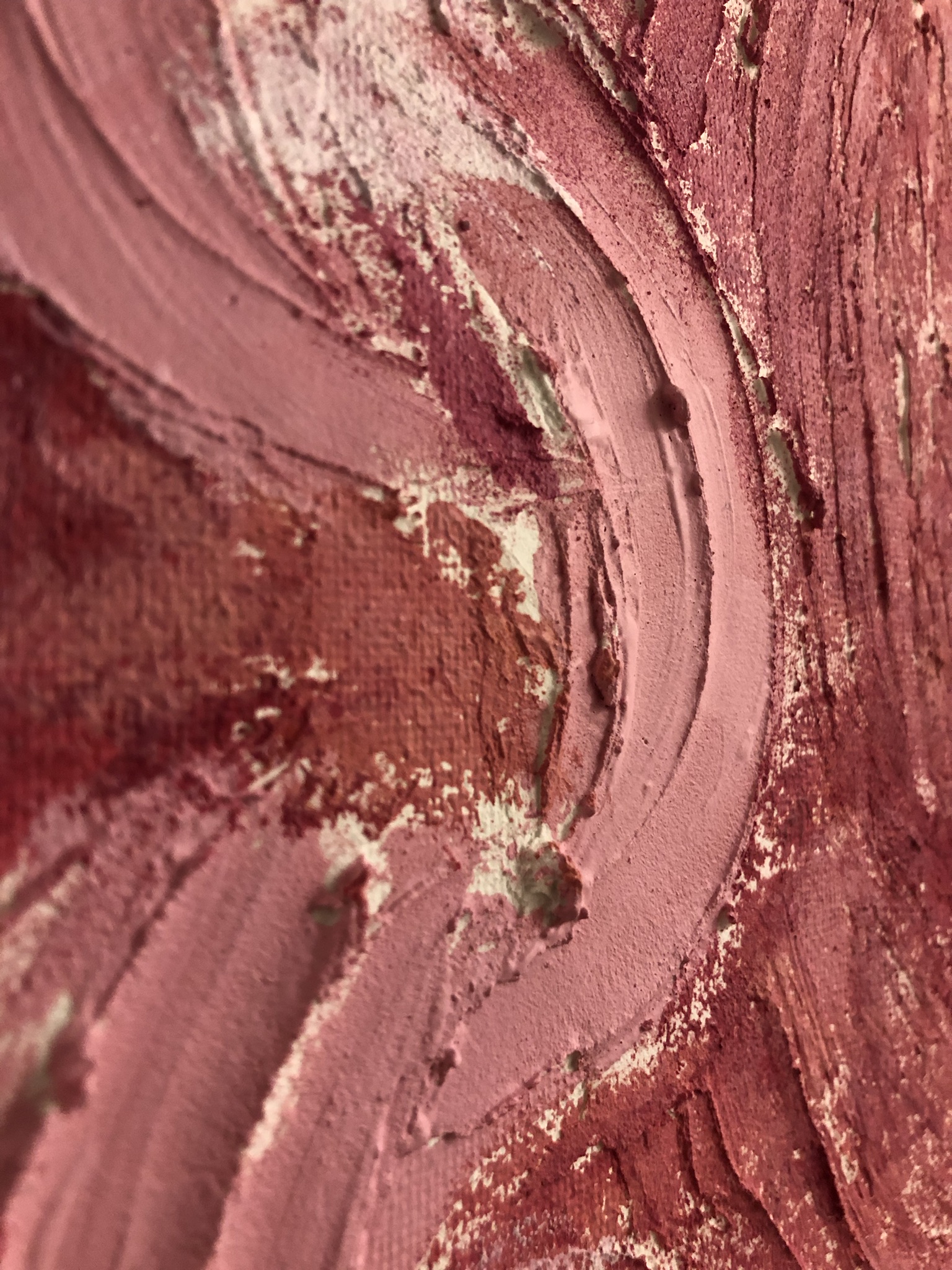Das Bild wurde mit Acrylfarben auf einer Baumwollleinwand gemalt. Hauptsächlich wurden rosa Farbtöne verwendet, die bis ins Beerefarbene gehen. Ein kleiner Touch von Apricot ist ebenso zu erkennen. Rosa ist eine sanfte Farbe, die für Mitgefühl, Fürsorge und Liebe steht. Der Einsatz der Farbe rosa beruhigt und besänftigt das emotionale Gemüt. Stilvolle Akzente, wie der Einsatz von Silbermetallic Farben und funkelnden Glitzersteinchen sowie die besondere Struktur, runden dieses Kunstwerk ab.